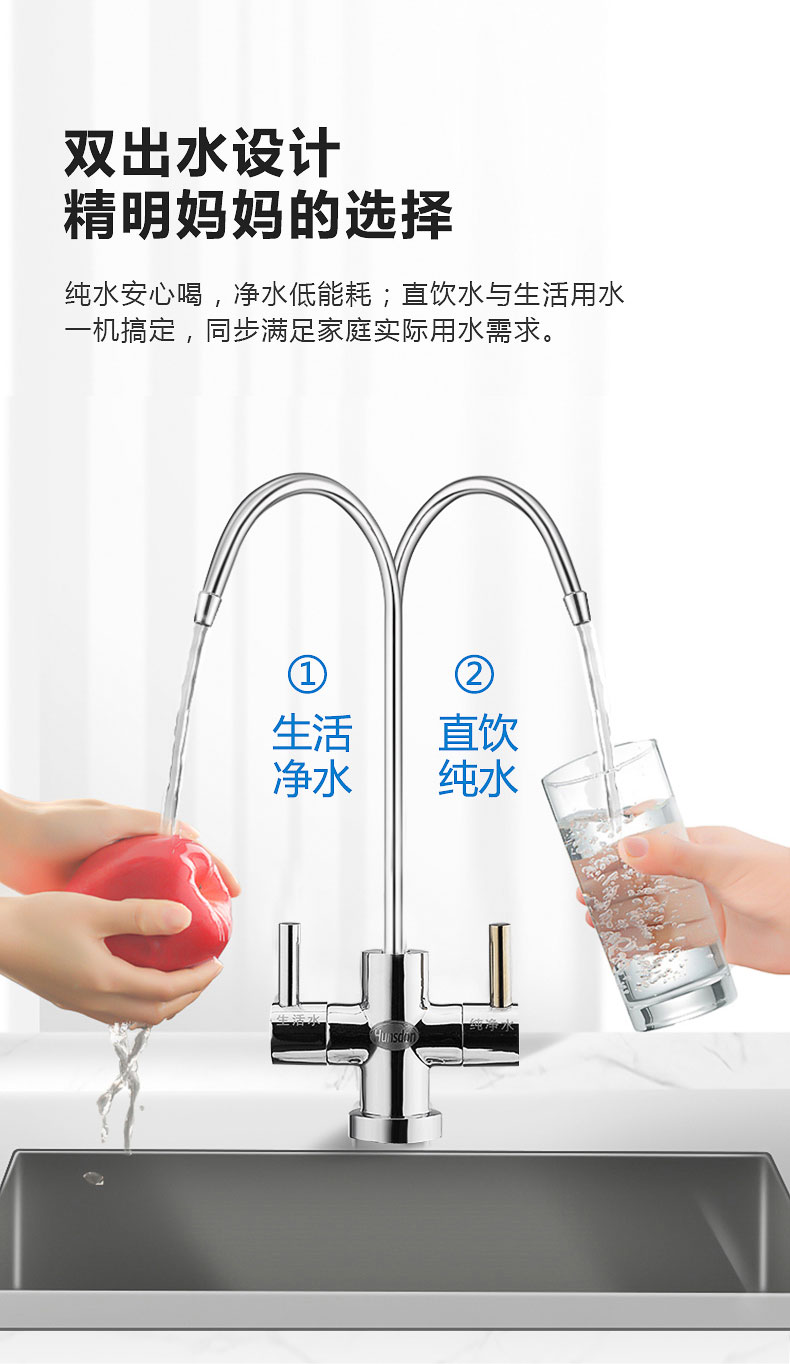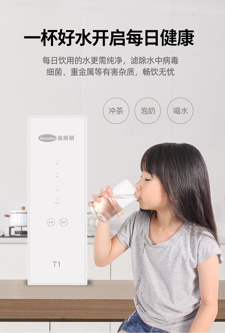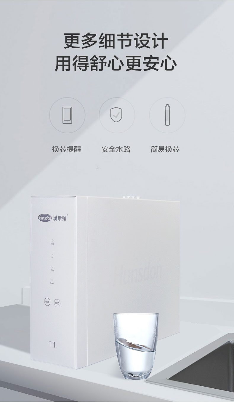 HSD-800G-T1家用純水機,極致簡約設計,全時智能控制,一體化集成系統,智能換芯提醒,完美解決家庭生活、直飲用水。產品濾芯外層采用柔順折疊膜,抗污強,減少濾芯更換成本;內層采用纖維碳,高效濾除余氯、異味等;雙RO膜設計,水中雜質一網打盡,健康飲水生活觸手可及!
