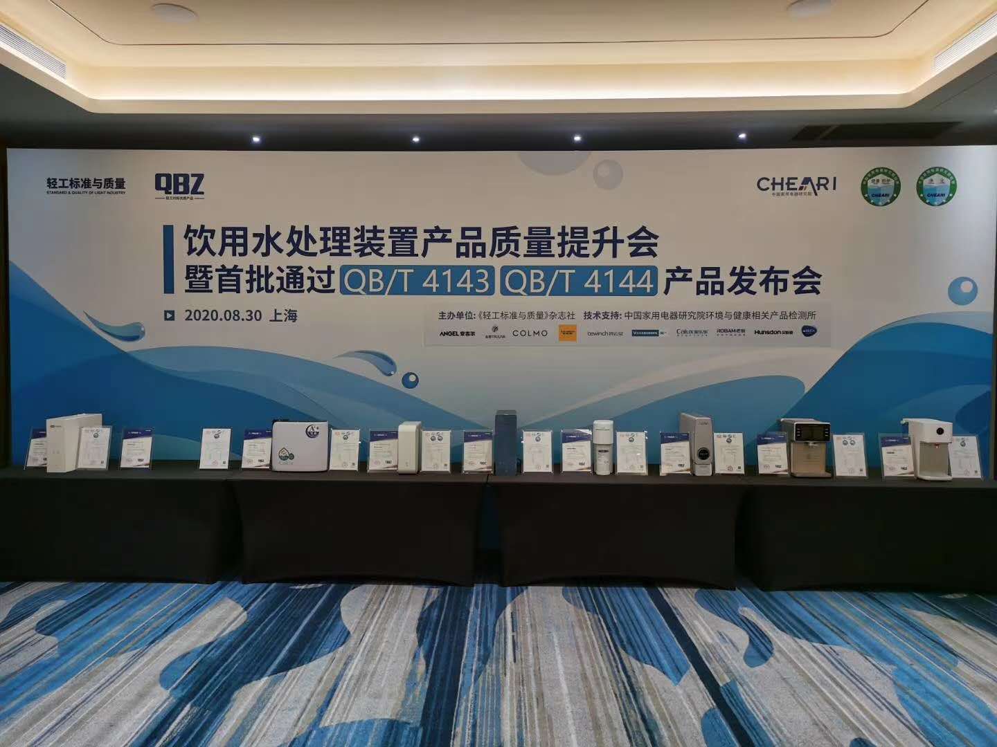 2020年8月30日,“飲用水處理裝置產品質量提升會暨首批通過QB/T 4143、QB/T 4144產品發布會”在上海隆重召開。漢斯頓集團作為凈水器企業代表參與本次發布會,漢斯頓旗下產品HSD-800G-T1成為首批通過QB/T 4143、QB/T 4144產品標準的凈水器之一。