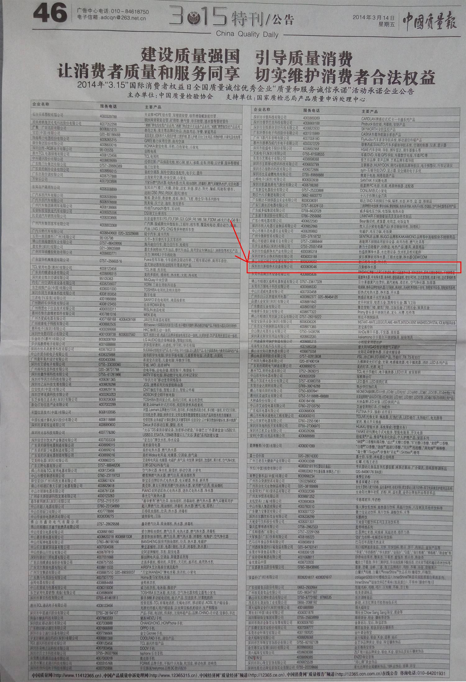 《中國質量報》“3.15特刊”46版參考連接:http://epaper.cqn.com.cn/html/2014-03/14/content_196055.htm#