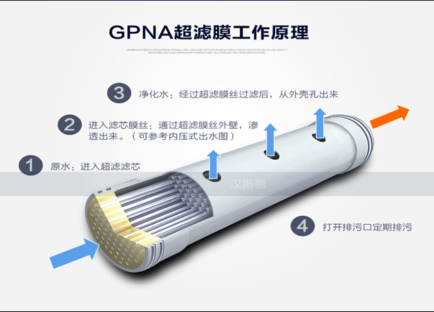 GPAN材料是超濾凈水領(lǐng)域第三代膜材料,這種材料的超濾系統(tǒng)膜,是漢斯頓改進提升的一種新型材料膜。GPAN超濾膜具有以下六大特點: