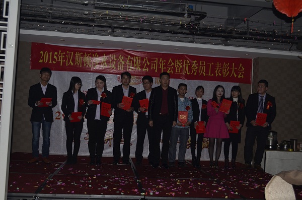 年會開始詹總經理發表了對2014年整個工作的總結報告,報告中強調了2015年公司的發展方向,和公司領導人做強做大漢斯頓品牌的決心。接下來頒發優秀供應商企業名單,漢斯頓總裁詹董事長發表了對供應商伙伴的致辭,親切的稱供應商為合作伙伴,表現出對供應商朋友互利共存的感謝之情。接下進入2015年漢斯頓優秀員工表彰大會,漢斯頓領導為各部們的優秀員工頒發了獎狀和獎金。